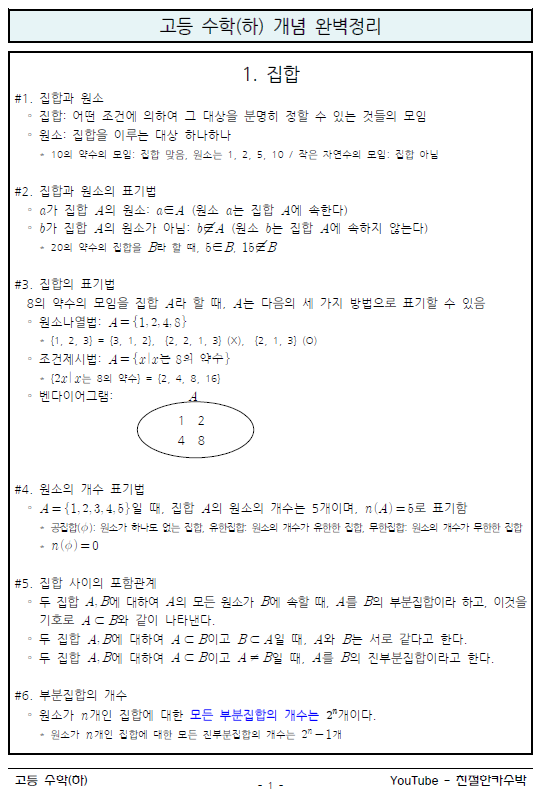 개인적으로 정리한 수학(하) 개념정리 파일 공유합니다~ ^^